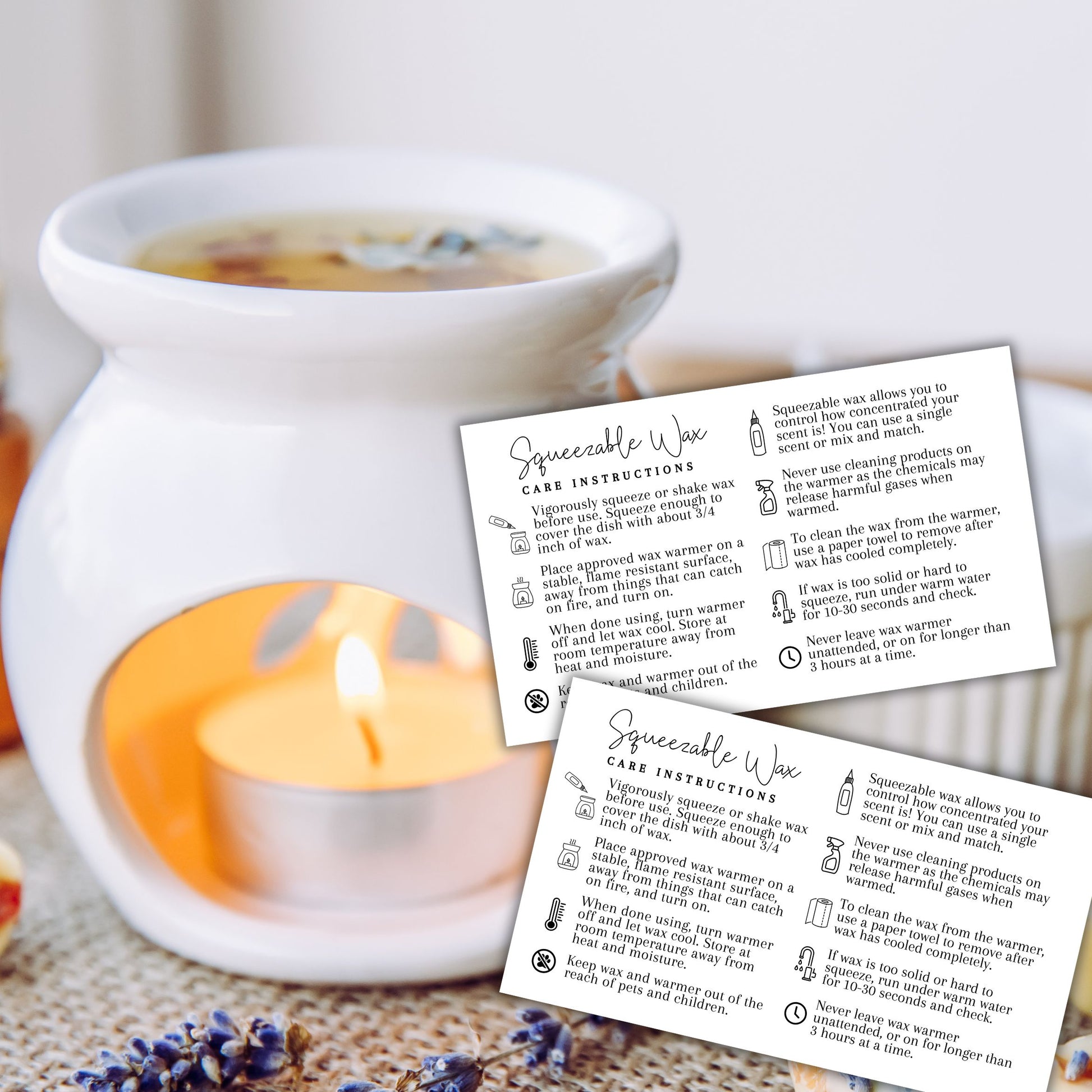 Beyond their practical use, these care cards also function as business cards, adding a professional touch to your operations and making them a fantastic marketing tool for anyone involved in squeezable wax melts supplies.