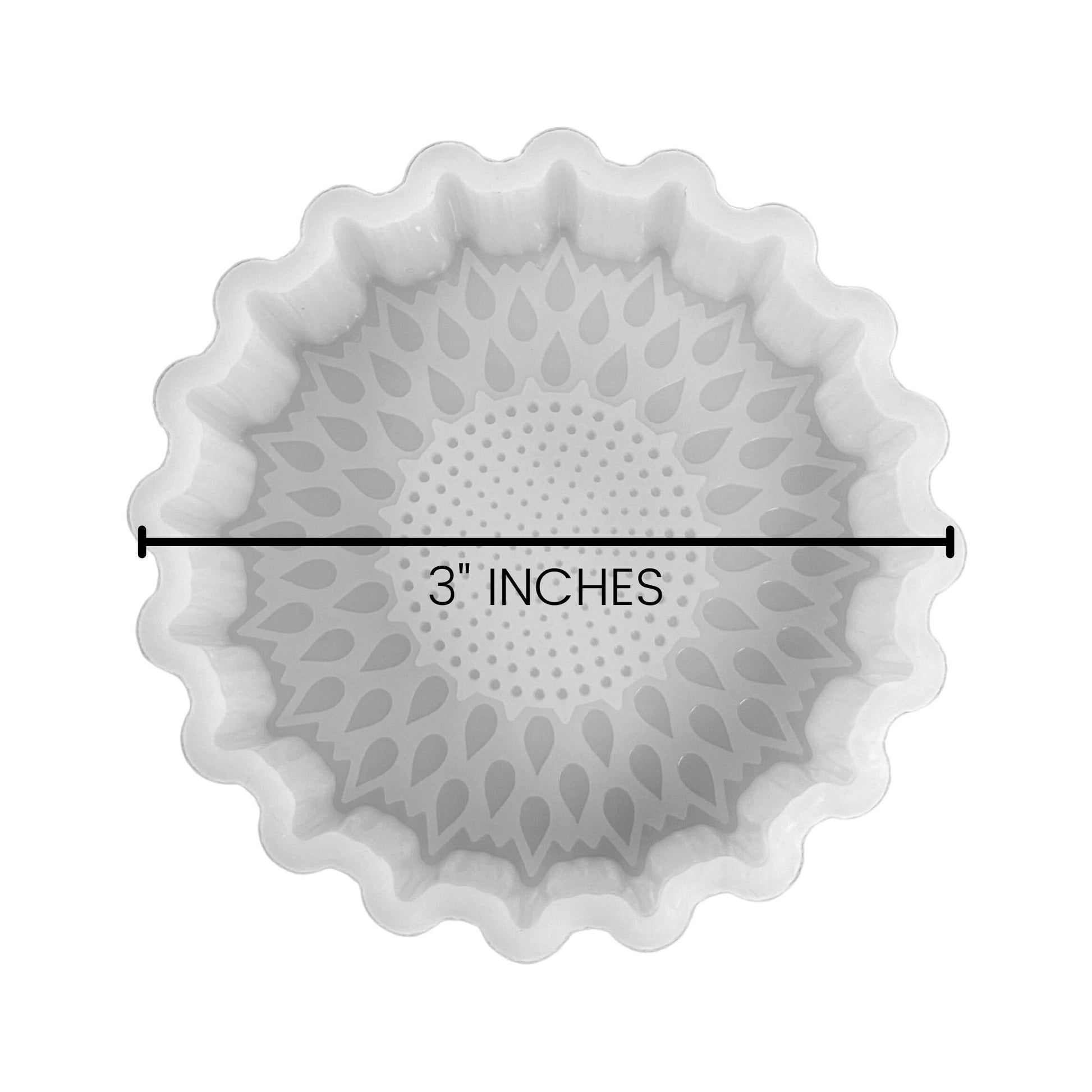 Includes 1 silicone mold in the shape of a sunflower! This mold measures 3" Wide x 3" Long x 0.8" Deep! A thick durable quality silicone mold perfect size for vent clip freshie.