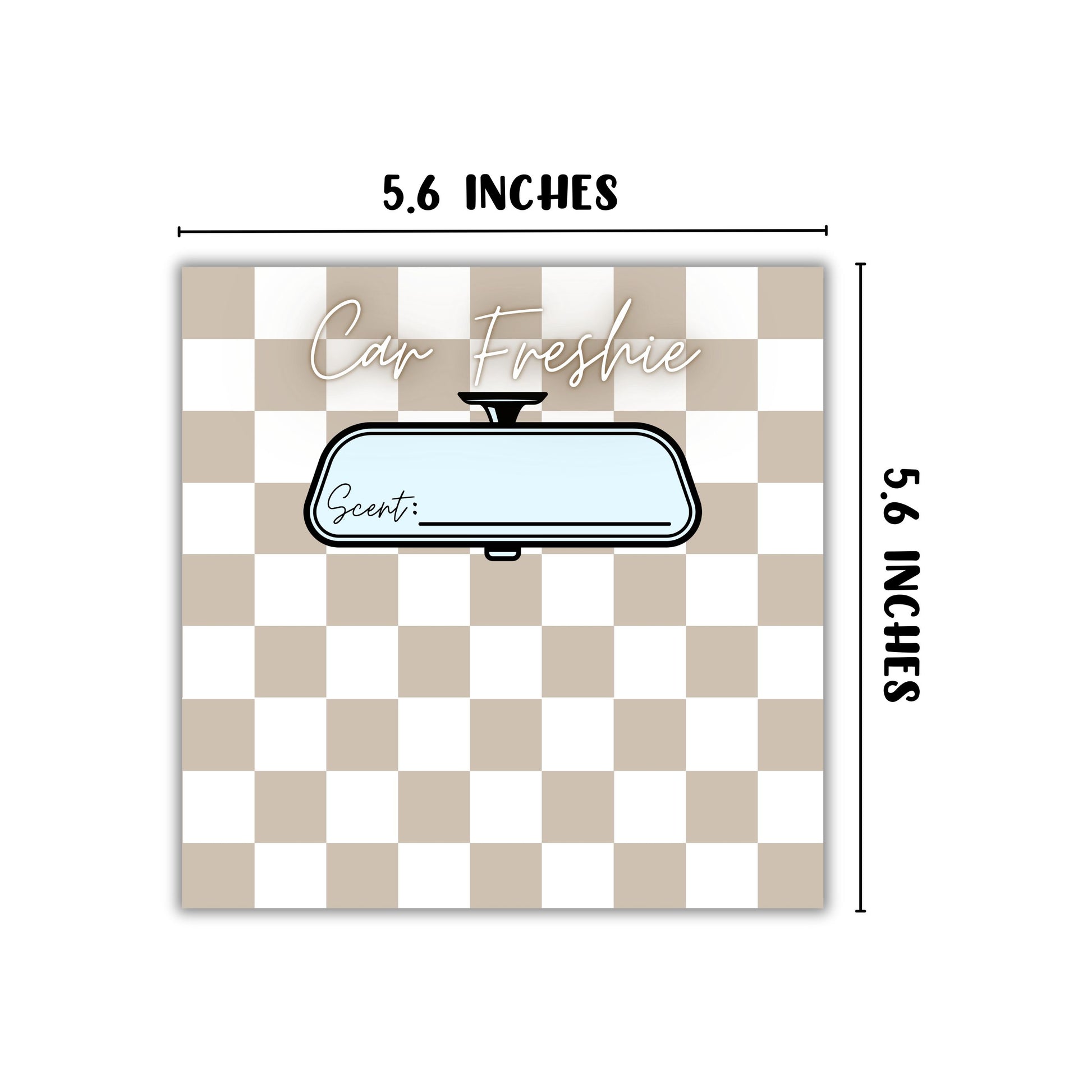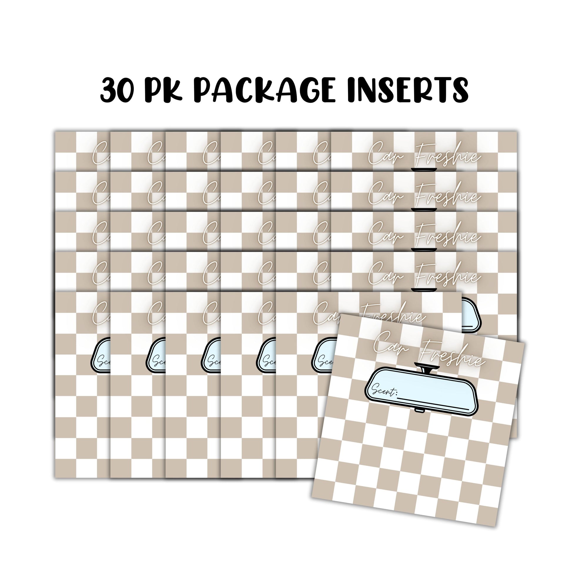 The Tan Checkered Freshie Cardstock Insert for Holographic Bag (30pk, 5.6x5.6”) is the perfect addition to your freshie supplies. These high-quality freshie cardstock inserts are designed to fit square holographic bags, providing a stylish and functional way to enhance your car freshie packaging. Whether you're using car freshie rounds or vent clips, these insert cards offer a sleek and professional touch, ideal for small businesses that sell car freshies. Made from durable color cardstock paper with a trendy tan and white checkered pattern, these glimmer cardstock inserts add a chic and eye-catching look to your freshie products.