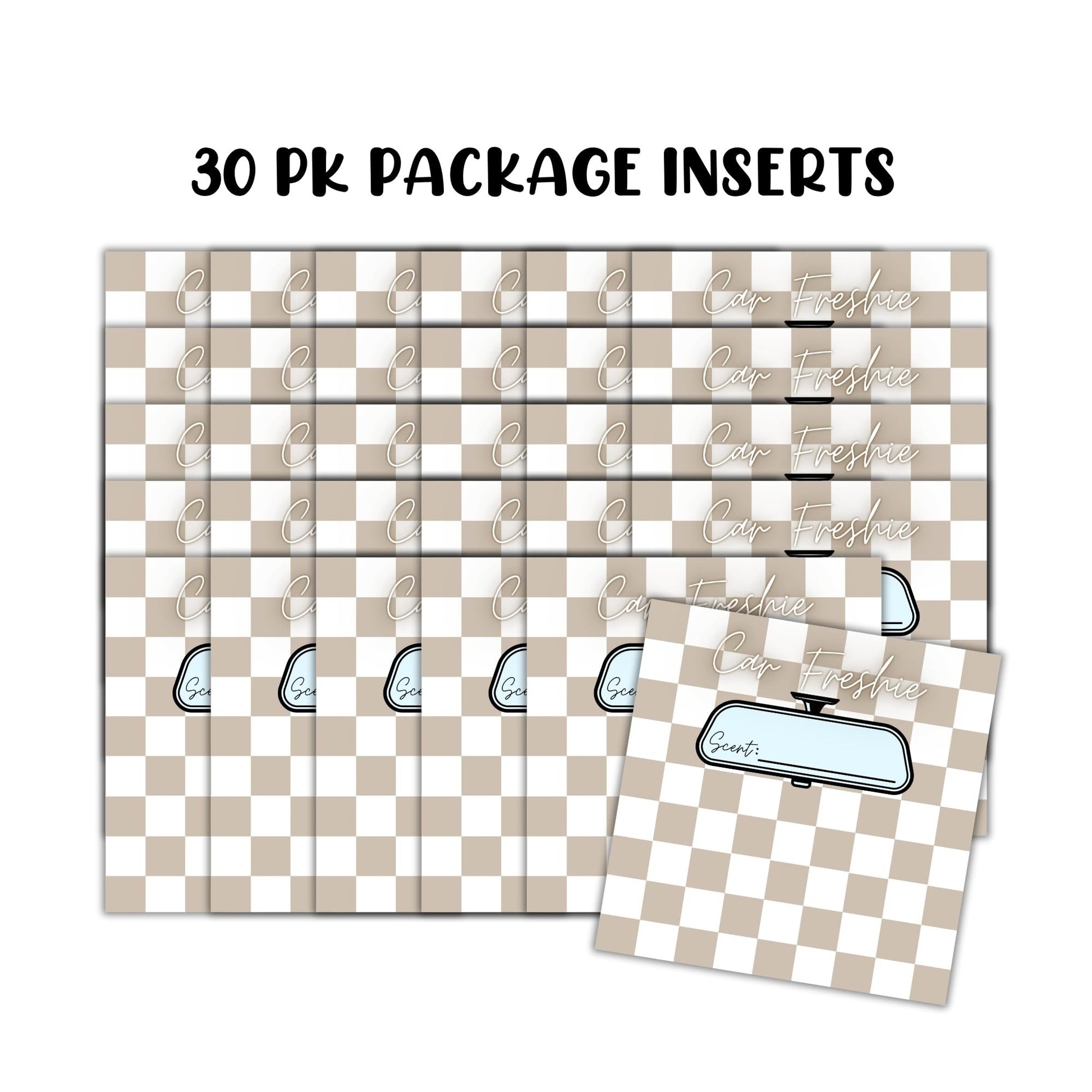 Tan Checkered Freshie Cardstock Insert for Holographic Bag 30pk 5.6x5.6” for 6” Square Bags Car Freshies Rounds Vent Clips Care Instructions