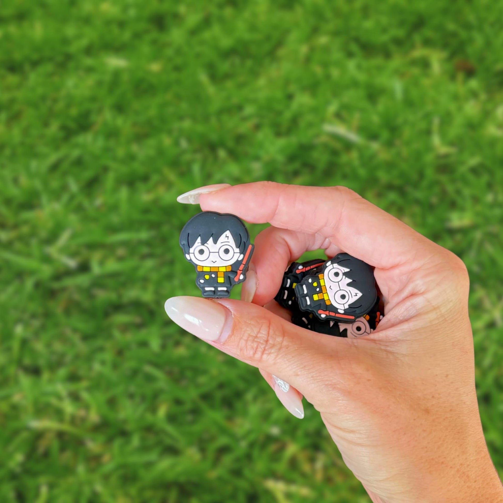 Wizard Boy Silicone Focal Bead 12pk Bulk 3cm Magical World Wand Book Character Hog Lightening Bolt Pott for Beadable Pens Keychains Freshie Hangers